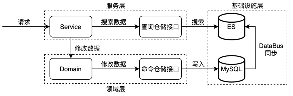 CQRS模式将一个子域(聚合根)的存储库拆分成为两个实现: