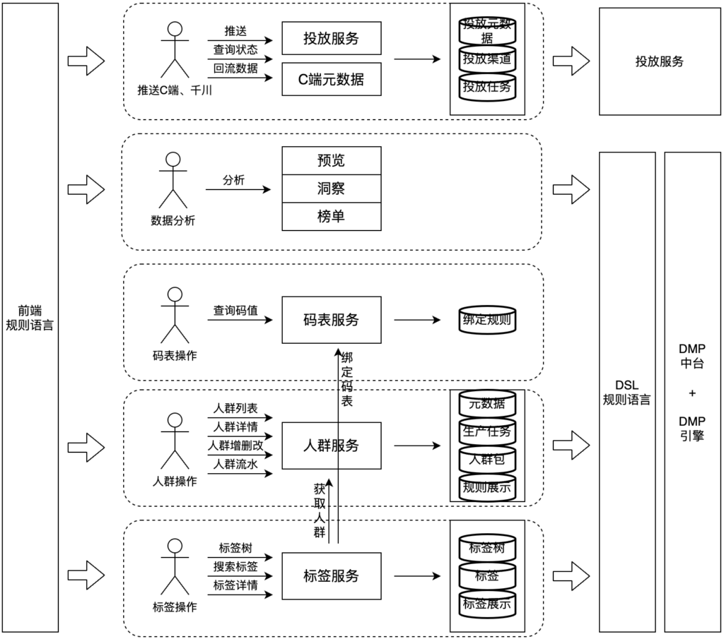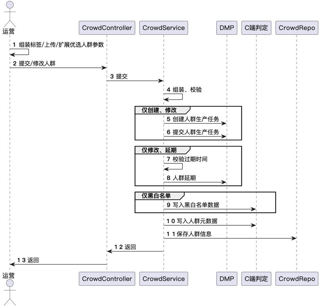 人群是一个uid集合。用户通过标签、手动上传、算法模型等方式创建人群,再针对这些uid进行定向运营,如发券,个性化资源位等。