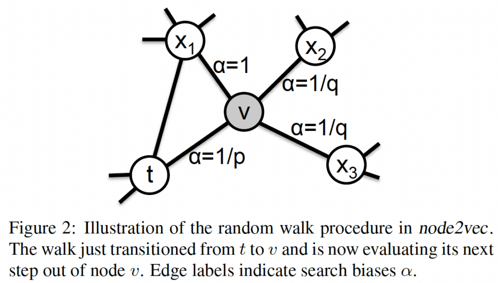 提出了一种基于随机游走的图采样算法。通过设置参数,使游走结合BFS(同质性)和DFS(结构等价性),既保留了邻居的关系,同时尽可能地提取顶点特征。